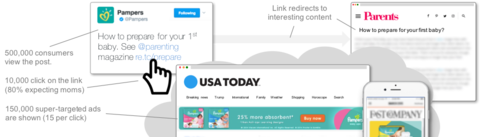 Pampers can show 150,000 super targeted banner ads to 10,000 people that click on the content.
